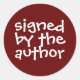 A simple but striking author sticker. Stating 'signed by the author' in bold typography on a dark red background. A good way to make the autographed copies of your book stand out.