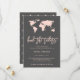 This chic, modern wedding save the date card features a smoky gray background with a trendy blush pink colored world map and matching typography that says "book the tickets!". Perfect for anyone having a destination wedding where guests will need to make travel arrangements in advance.