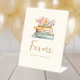 Express your gratitude with our "Favor" tabletop sign from the "Wildflower and Books" collection. This sign features the elegant, handpainted watercolor illustrations of books and wildflowers, in soothing hues of pink, blue, green, and gold. Designed with a retro vintage typewriter font and a trendy gold script against an ivory backdrop, this sign adds a refined touch to your favor table, beautifully coordinating with the overall theme of your bridal shower.