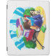 I was super excited when I got my cover in. It is attached by a magnet across the edge. I don’t think it will be very protective but it is very cute. I’m going to keep my iPad in a sleeve and use this face cover while I have it out. It folds to create a tilt for better viewing and to keep the iPad at a slight angle for typing. The colors are bright and it is fun. I’ve really enjoyed it. The personalization looks like amazing. It is the same color as the picture and is the same brightness. Well done! Very nice.