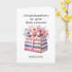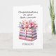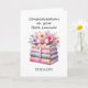 Personalized congratulations card for a published author's book launch! Features a beautiful stack of watercolor books with watercolor flowers and a whimsical pink bow. The front of the greeting card can be easily personalized with their name. This would make a unique keepsake card for a writer.