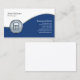 This bookkeeper/accounting business card features blue and white segments separated by a wavy chrome strip. An elegant chrome bordered icon of a calculator lies on the lower left side of the design, that's generally suitable for businesses or professions related to money or finance. Customize this card immediately with your name and details.
