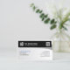 This bookkeeper financial services business card has a simple design consisting of a black banner on the top, casting a subtle shadow towards the right. Your Business logo, name and tagline appears within this banner. If you have a QR code, you can place it on the right side of the banner. Your name, title and contact numbers appears below this banner on the left while your business contact details appears on the right. Perfect for finance, investment, management, administration, marketing, professional, business services, clean, simple, minimal, professional, elegant themes.