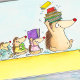 The little hedgehogs run behind the big hedgehog carrying books, and wearing their best pyjamas. It's time to choose a book for a bedtime story.