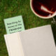 Green leaf viewed through a magnifying glass. Text reads "Searching for leaves on the xxxx family tree." Insert your family name. Pale green background. Great gift for the genealogical researcher who needs to mark important information during research.