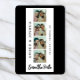 This design features a fun photo booth style format. Easily add your 4 square photos (simply take 4 selfies with your phone, crop and upload!). Click the "Click to customize further" button to edit the text colors and background color.