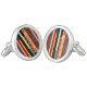 These contemporary fine art cuff links feature a shelf of colorful books. They form an interesting abstract vertical geometrical composition in colors of red, blue, green, yellow, purple, beige, tan and black. The original photographic image has been digitized to create a painterly effect.