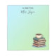 Unique teacher notepad design featuring a charming stack of books and coffee cup. Customize with your teacher's name for a thoughtful and practical gift.