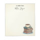 Unique teacher notepad design featuring a charming stack of books and coffee cup. Customize with your teacher's name for a thoughtful and practical gift.