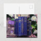 Books and Blossoms design features beautiful old blue books and white spring camellia blooms and periwinkles. This design includes a glass ink well, a mother-of-pearl pen and an antique clothes pin. It is sure to please bookish people including readers, writers, bibliophiles, librarians, book sellers, book collectors, and bookworms.