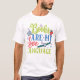 This design features a white t-shirt with the text "Books ARE MY love LANGUAGE" in a stylized font. The design includes graphics of a book, an apple, and a watch.