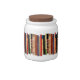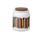 This brilliantly colored white porcelain candy jar features a shelf of colorful books. They form an interesting abstract vertical geometrical pattern in colors of green, brown, yellow, red, blue, black and pink.