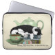 The sleeve is made of nice feeling material and seems very durable. I'm not sure how easy it'll be to clean, but the construction seems sound and the fabric is quick thick. I also like the double zipper. The printing is lovely and appears durable. The white on black contrast is nice, and the design very elegant.