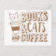 books cats and coffee postcard