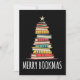 Funny Christmas tree forming by books, with Christmas ornaments and a Christmas star, and the quote "Merry Bookmas". A cool and funny kind to celebrate Christmas eve.