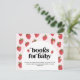 Our Books for Baby Berry Sweet Enclosure Carrs are designed with a strawberry and daisies pattern in shades of pink and red, and a retro typography, to match your berry sweet themed baby shower.