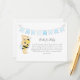 A fun, Books for Baby shower enclosure featuring blue flag banner at top, a teddy bear holding onto a cute honey bee. Templates on reverse side with a teddy bear sleeping on a blue flower.