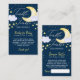 Theme Parties Twinkle Twinkle Baby Sprinkle budget baby shower enclosure card design features Books for Baby on one side and Diaper Raffle information and entry card on the other. The design features watercolor design elements including a watercolor moon floating among blue clouds and modern script typography paired with traditional block lettering. Watercolor stars accent the design which is set on a navy blue background. #BabyShower #ItsABoy #BooksForBaby #DiaperRaffle