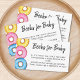 This cute Baby Shower Books for Baby Card features watercolor donuts in pink, blue and yellow.