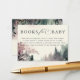 A whimsical watercolor illustration of lush foliage in emerald green and mauve and purple, sparkling bright with fairy lights and magic dust, with the mountains in the background and an adorable little fairy hidden in the greenery, decorates this girl baby shower invitation companion, the "Books for Baby" enclosure card with an enchanted forest theme. An elegant, modern invitation for a fairytale baby shower. Perfect for moms to be who love the fairytale forest setting, the fairy forest or fairy garden theme and emerald green, mauve and gold.