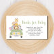 Cute books for baby shower enclosure card featuring a watercolor illustration of baby zoo animals (lion, elephant, zebra, monkey and giraffe) piled into a safari vehicle and a fun army green script. You can easily personalize your books for baby request.