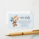 A cute teddy bear themed baby shower enclosure card requesting the guest to bring a book instead of a card. The design features a cute teddy bear holding blue, brown and orange balloons. The background is light blue and is perfect for a baby boy.