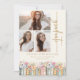 Books Graduation Announcement. Celebrate this milestone in style with a personalized graduate announcement that beautifully showcases three of your favorite photos on the front, paired with handpainted watercolor illustrations of books and delicate spring and summer wildflowers in soft hues of pink, blue, green, and gold. The vintage typewriter font and gold hand-lettered script on an ivory backdrop add a timeless, library literary charm. The coordinating pattern on the back ties the design together for a polished, elegant look. Customize the wording, font styles, sizes, and backgrounds to create a keepsake that truly reflects your journey. Share your achievement with a design as unique as your story—start personalizing today! (the script "graduate" CANNOT be changed"
