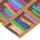 The colorful library bookshelf pattern on this table runner is perfect for bibliophiles / proud bookworms. The bright, repeating pattern is made up of 25 books that lean or stand straight, all on a shelf with a wooden look.