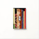 This pretty light switch cover features a shelf of colorful books. They form an interesting abstract vertical geometrical pattern in colors of green, yellow, red, blue, black and pink.