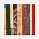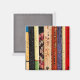 This magnet features a shelf of colorful books. They form an interesting abstract vertical geometrical composition.