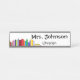 I was very pleased when I received my name plate. The brightness of the yellow caught my eye immediately because it was so true to color of the picture. The sturdiness of the material lets me know it won’t get bent or broken easily. The sturdiness of the card stock is a plus as well. The colors even on the chalkboard and apple are true to life colors. The apple looks like you can take a bite out of it.
