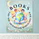 Are you trying to motivate young minds to read? It may be your kids or grandkids, or you want to make a special gift to your school that will last for many years. This beautiful poster would be a great addition to a classroom, a kids' reading nook, or a homeschooling space. Consider adding it to your back-to-school supplies and donating to your child's teacher to help furnish the classroom with great motivational and beautiful posters. The design features a globe surrounded by children and a book at the bottom, set against an enchanting background with a half-moon, stars, sun rays, and a colorful but serene valley full of wildflowers and butterflies. The motivational and inspiring quote is elegantly and boldly displayed, emphasizing the importance of books. This modern and attractive poster is sure to catch anyone's eye.
