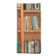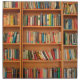 School library educational books on a brown wooden bookshelf for teachers, students and bookworms.