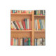 School library educational books on a brown wooden bookshelf for teachers, students and bookworms.