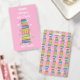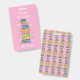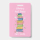 Pretty pink vertical library hall pass badge with the watercolor illustration of a bookstack and some little flowers on the front and a pattern of this same design on the back . This badge is also available in a teal color .