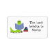 A cute label to tag your books. A green bookworm reading a blue book with a stack of books beside him. Customize as desired.