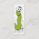 Original illustration of a funny looking green bookworm posing in a cool attitude pose. On the front of this bookworm mini bookmark business profile card template is one half of a worm with a face and on the other side is another half of bookworm illustration which shows he's peeking out of a hole. All the text is customizable, on the front is a space for your website text, which can be used for other text instead, and on the back is space for all other information about you. To customize this profile card bookmark click Customize it button under the image.