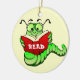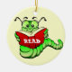Bookworm Ornament with customizable text (on book). Background color can also be customized: select customize, edit and background.