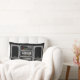 A soft, comfortable lumbar pillow dressed up as a boom box.