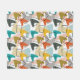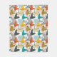 This medium fleece blanket has a mid-century modern design of boomerang shapes and cork shapes in retro colors.