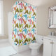 This shower curtain has a mid-century modern design of boomerangs scattered about with segments crossing them.