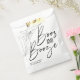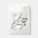 Use personalized favor bag for your Halloween party. The card features the text "boos and booze" in a hand-lettered font with spider webs as a border.