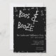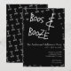 This spooky Boos and Booze Halloween party invite features a black background with white handwritten style typography / text. Perfect for fun-loving hosts throwing a festive Halloween celebration with drinks and friends.
