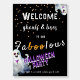 Set the tone for a wonderfully frightening fun adult Halloween boozy party with this spooktacular Welcome Sign! A Faboolous party with "BOOs and Booze", with a fun ghost with sunglasses and a cocktail in hand, this sign can be easily personalized for your event. The color palette includes black, white and orange and a purple accents.