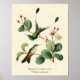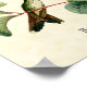 Vintage natural history illustration by Antoine-Germain Bevalet, c. 1874, of two Booted Racket-tail hummingbirds (Ocreatus underwoodii.) Two green hummingbirds perch on the flowering branch of a myrtle shrub, with a light golden yellow parchment texture background. Digitally cleaned and enhanced while still retaining its vintage characteristics. Features common and scientific names in decorative fonts. Sized to fit standard frame.