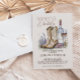 Plain white envelopes are included with paper invitations and will come to fit the invitation size you select. If you don’t need the envelopes, you may choose to not receive them by selecting the dropdown below "Envelopes" and choosing "None." If you’d like to have a design on your envelopes, you can browse all of these available envelopes to find the design that complements your Boots And Bubbly Bridal Shower Invitation.