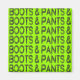 The words "Boots and pants and" over and over in black text. When you repeat these words over and over it sounds like a drumbeat.