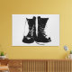 Black boots on a light grey background. Custom vintage style print. Gift idea.