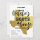 Make her Texas Bachelorette dreams come true with this fabulous Boot & Booze Texas Bachelorette Invitation. Put the focus on the lucky lady with its glamorous black and gold design and Texas gold map, ready for her to kick up her boots and have a good time!