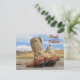 This is a wonderful photograph of western cowboy boots, complete with custom made spurs and a scenic sky in the background. The spurs are made from authentic 1880's era Mexican peso's, and say "Yeeha". All the text, front and back, is easy to customize.